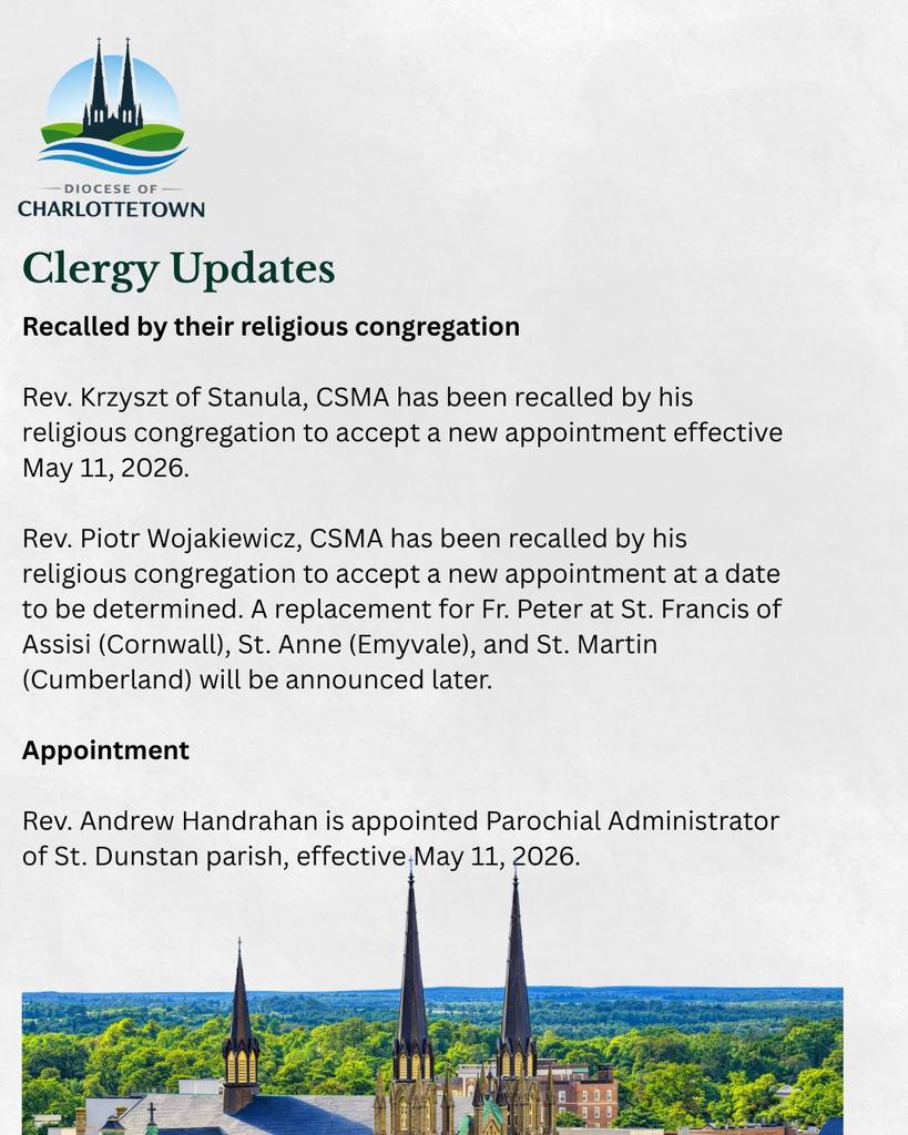 Diocese of Charlottetown Clergy Updates for May 13th, 2026. April 13, 2026 Share this:Tweet Print (Opens in new window) Print